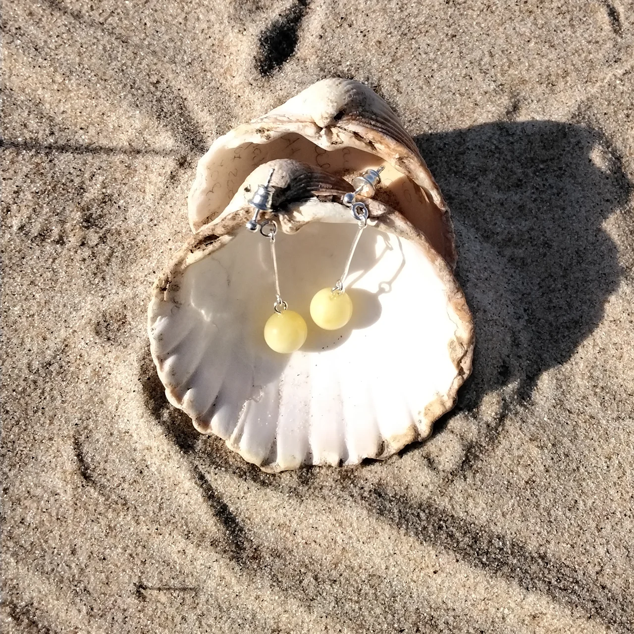 Pagaminta iš tikro Baltijos gintaro – lengvo, šilto akmens, susiformavusio iš suakmenėjusių medžių sakų. Lengvi ir elegantiški auskarai, pabrėžiantys natūralią gintaro šilumą.