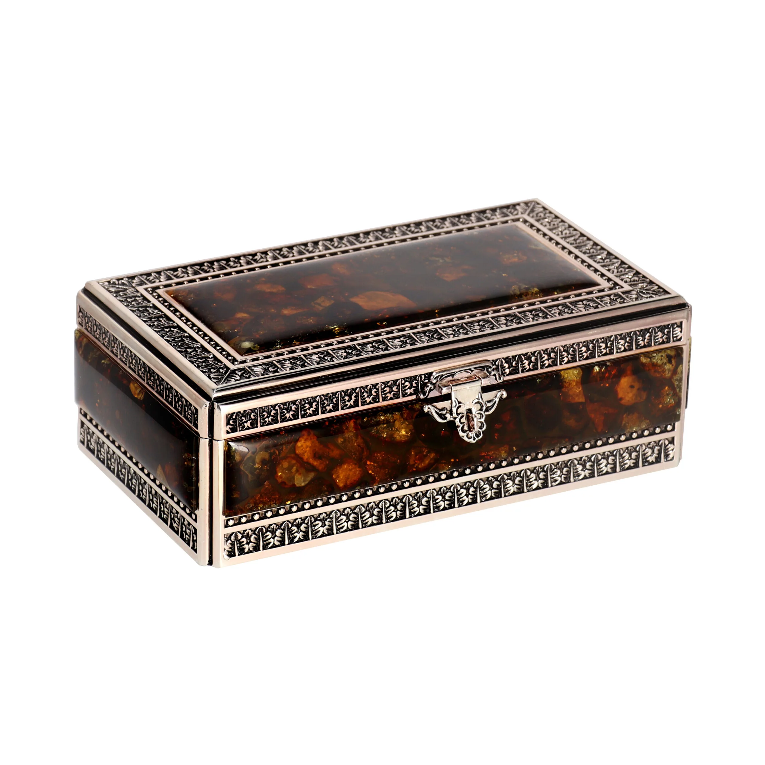 Pagaminta iš tikro Baltijos gintaro – lengvo, šilto akmens, susiformavusio iš suakmenėjusių medžių sakų. Stilinga vieta papuošalams ar smulkmenoms laikyti.